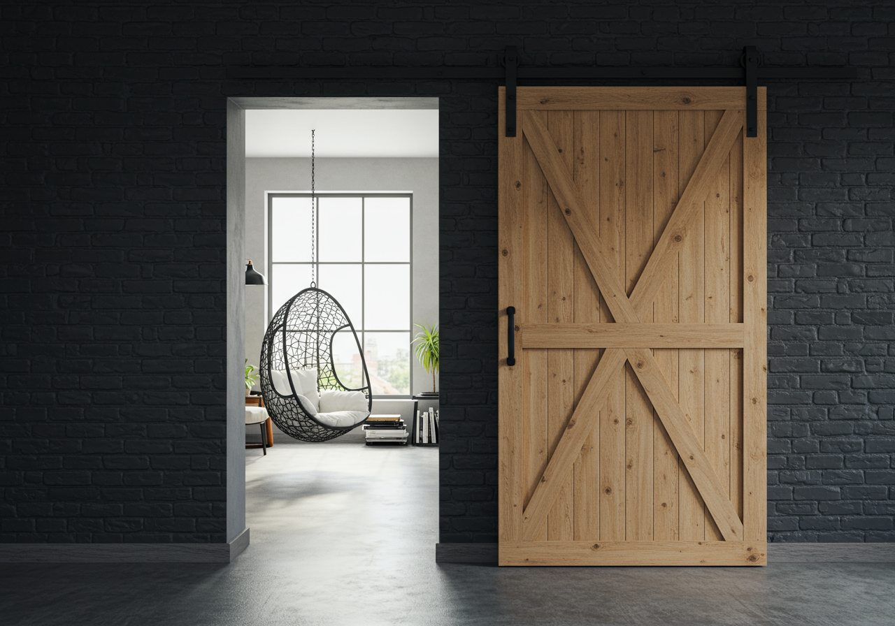 Barn doors are being pushed off the designer's priority list, as country house styles lose their traction. They are cumbersome and do not always slide smoothly on the rails, which can be inconvenient. On the other hand, small sliding panels hanging on either side of the door, like those that blend in with trendy colors such as glass, navy, and green, are becoming more and more popular and provide privacy as needed.