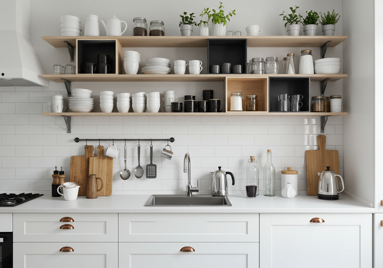 Replacing the upper cabinets with open shelves has become an approach to making the kitchen feel more open and with more light. Open shelves also save money on kitchen repairs. But in practice, an open shelf can be difficult to pull off. Plates and glassware should always match and be perfectly organized. This is in contrast to what people do during this current pandemic as homeowners tend to hide their clutter rather than show it off.