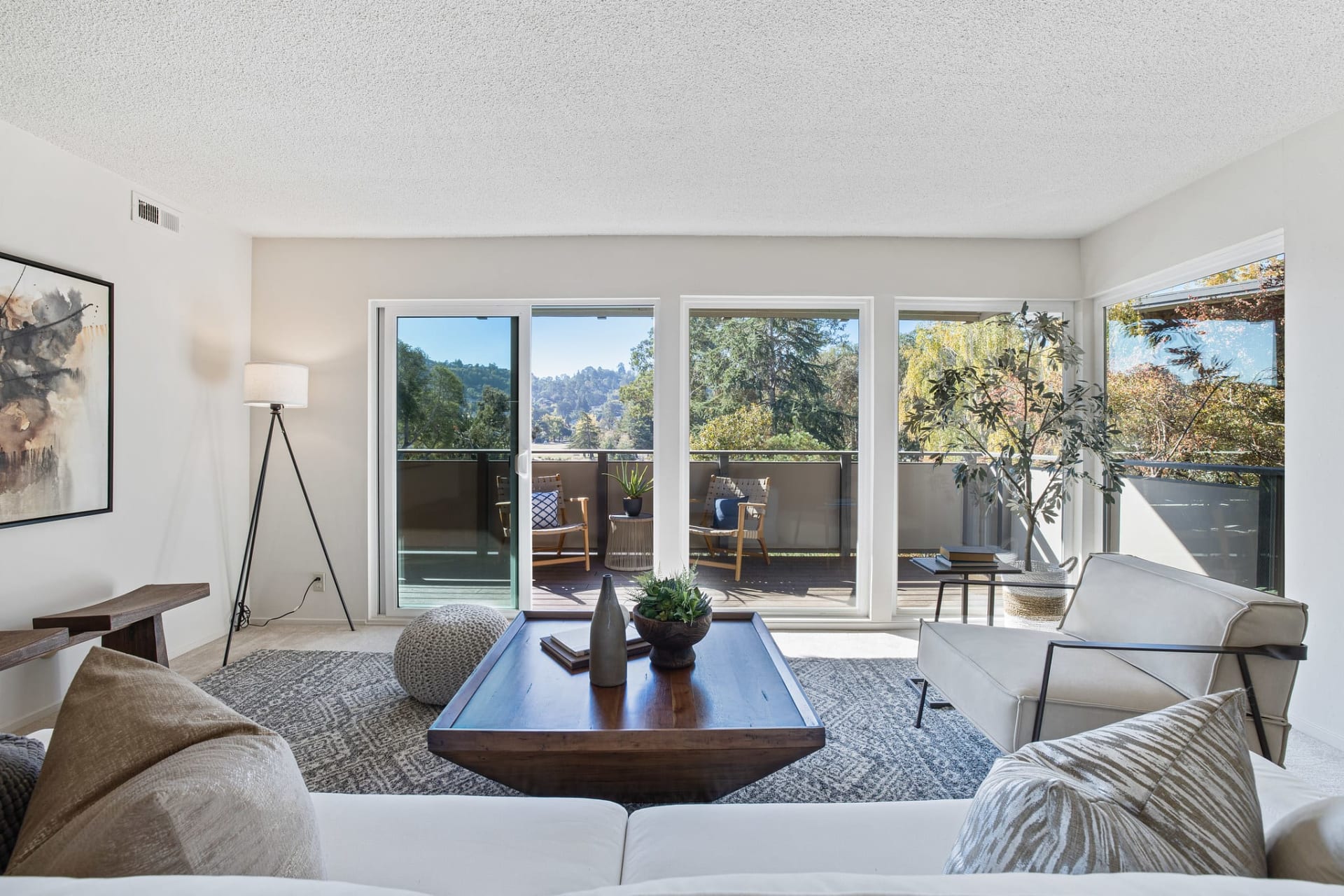 Picture windows afford amazing views, and the sliding glass doors open to the deck
