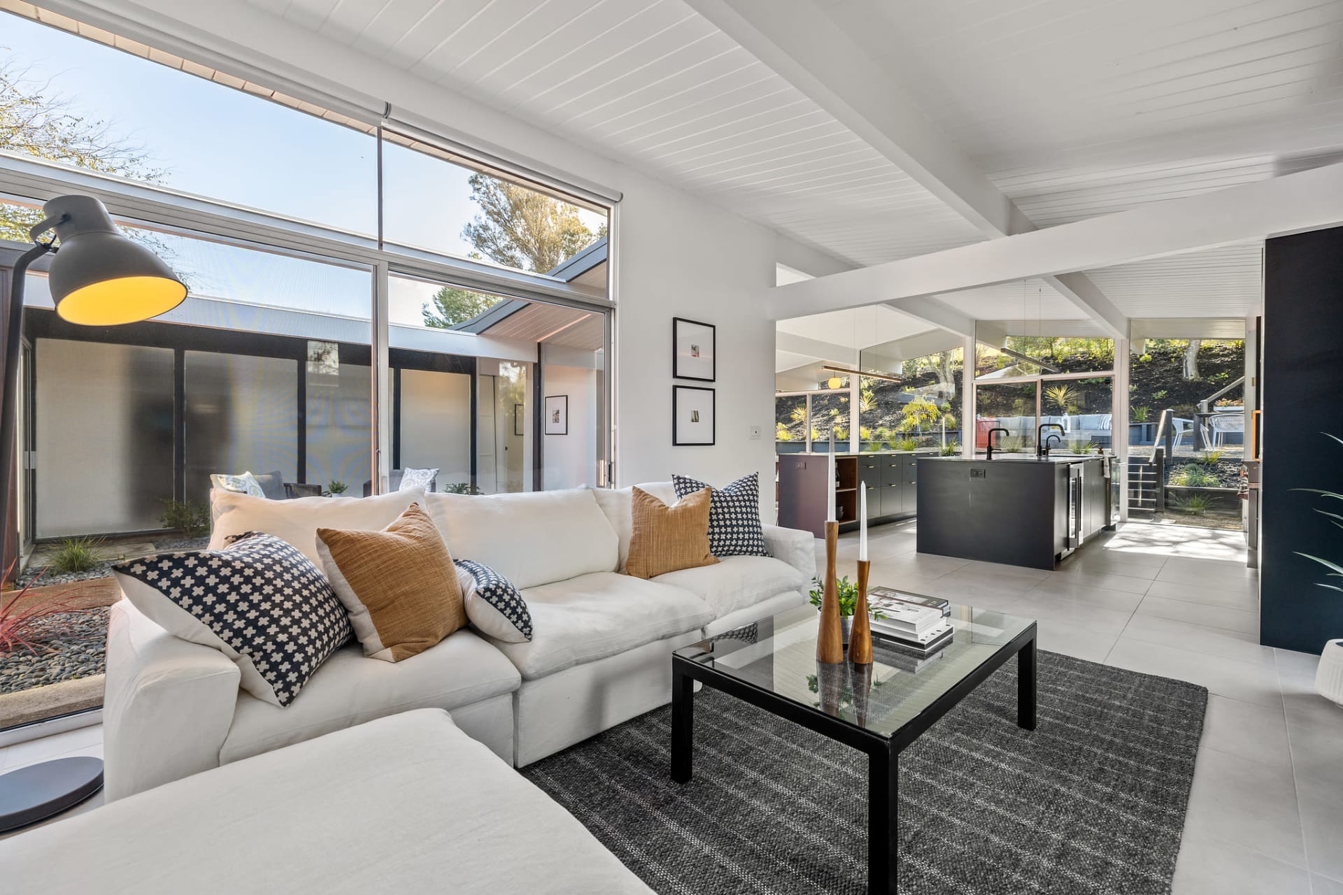 Upon entering the home, you will be greeted with an open-concept living room and dining room, complete with high ceilings and large windows that let in an abundance of natural light.