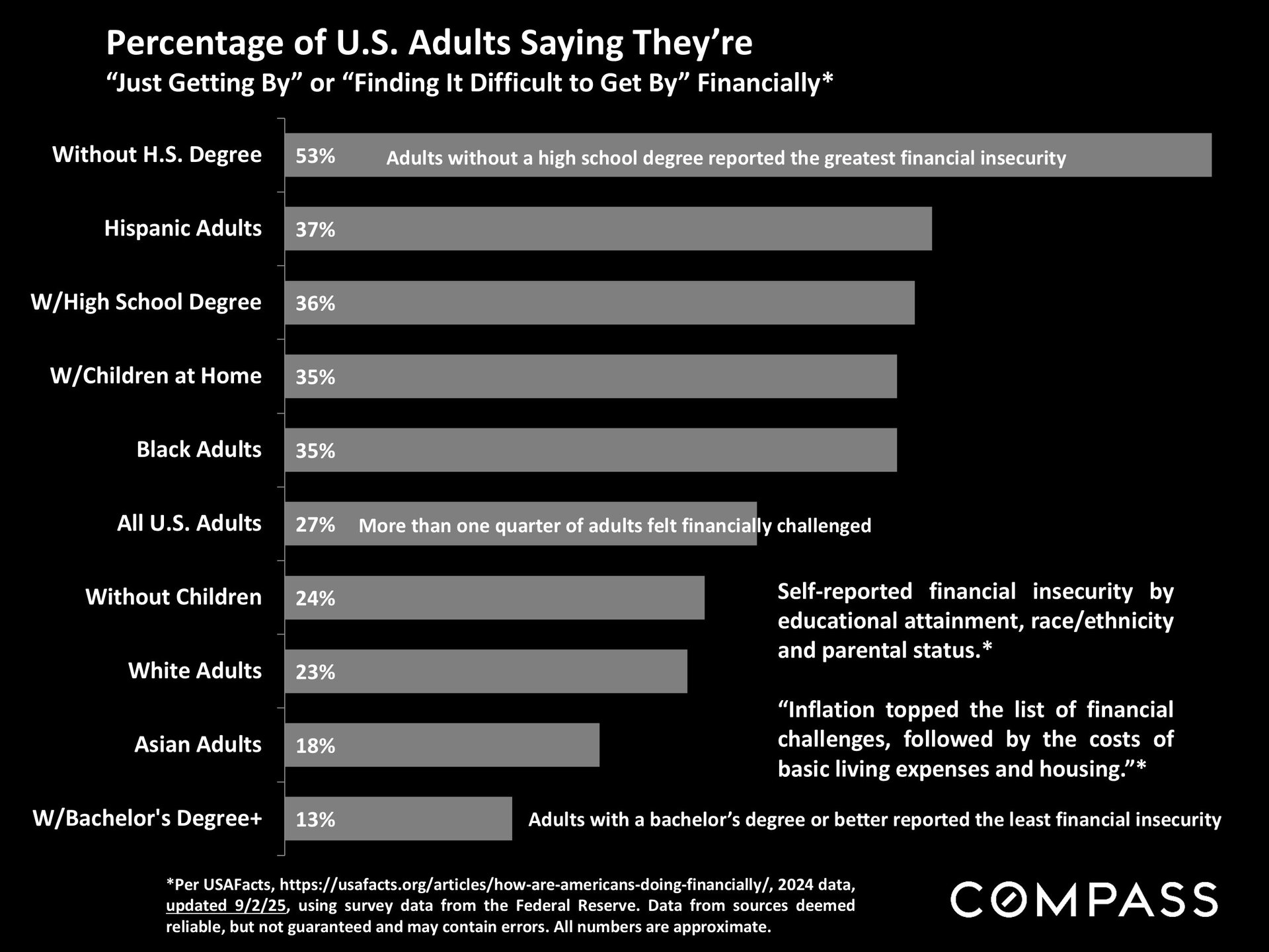 The statistics in the next chart, based on Federal Reserve data, refer to 2024 - and, according to Consumer Sentiment readings, feelings of financial insecurity have increased in 2025. But there are big differences between the affluent - many of whom are apparently singing "Happy Days," - and the less affluent, who are increasingly facing challenging economic circumstances.