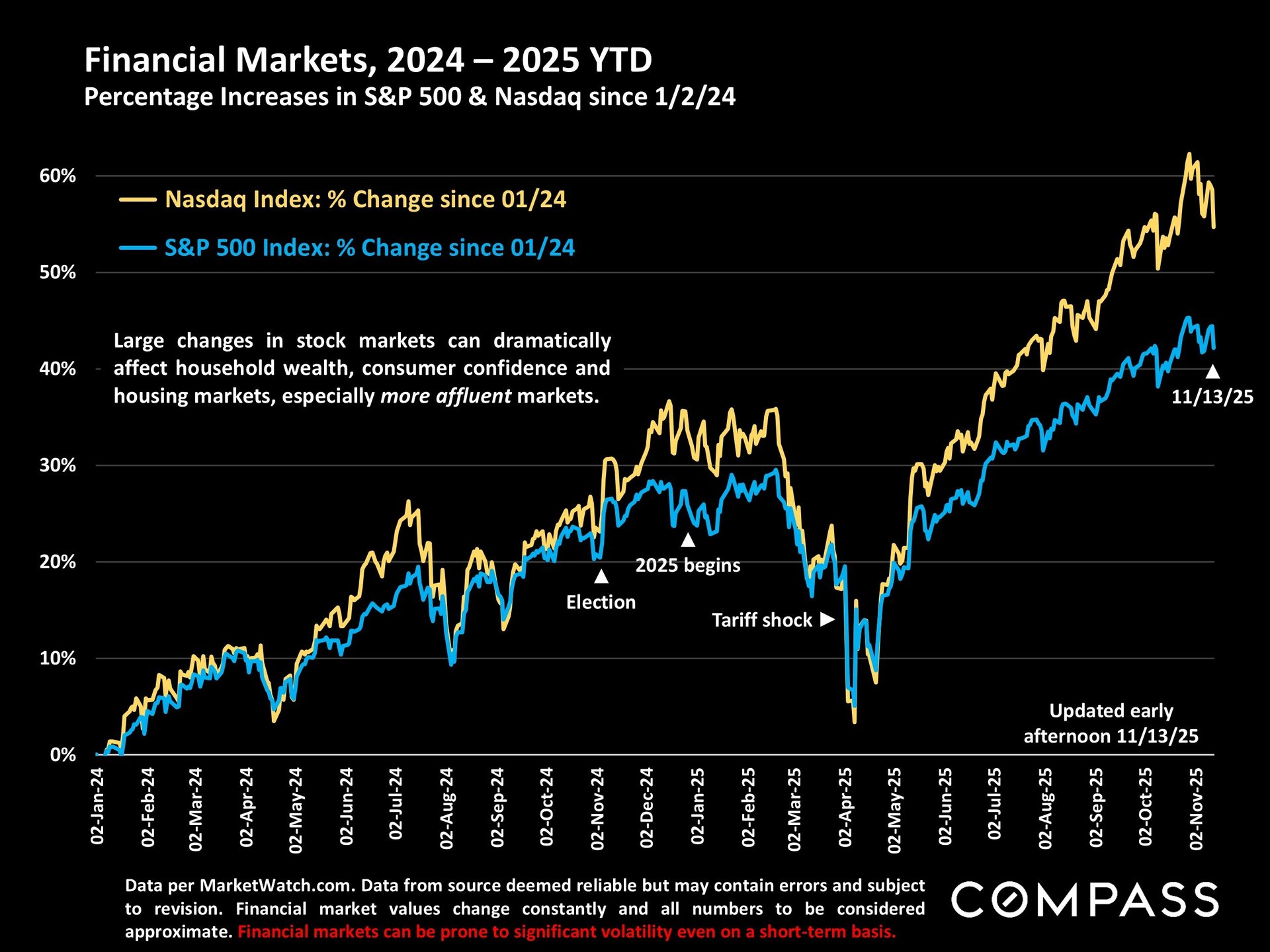 From John Burns Research, 11/12/25: "High-income job losses will reshape housing demand: The job market drives housing demand, but the type of jobs created or lost impacts the type of housing. High-income sectors—Information, Professional Services, and Financial Activities—are shrinking across most major metros. Workers in these industries drive for-sale housing demand more than rental demand. Nationally, high-income sector employment remained flat YOY in August, well below its long-term compound annual growth of +1.6%." I can't say whether their concerns are legitimate or overblown.