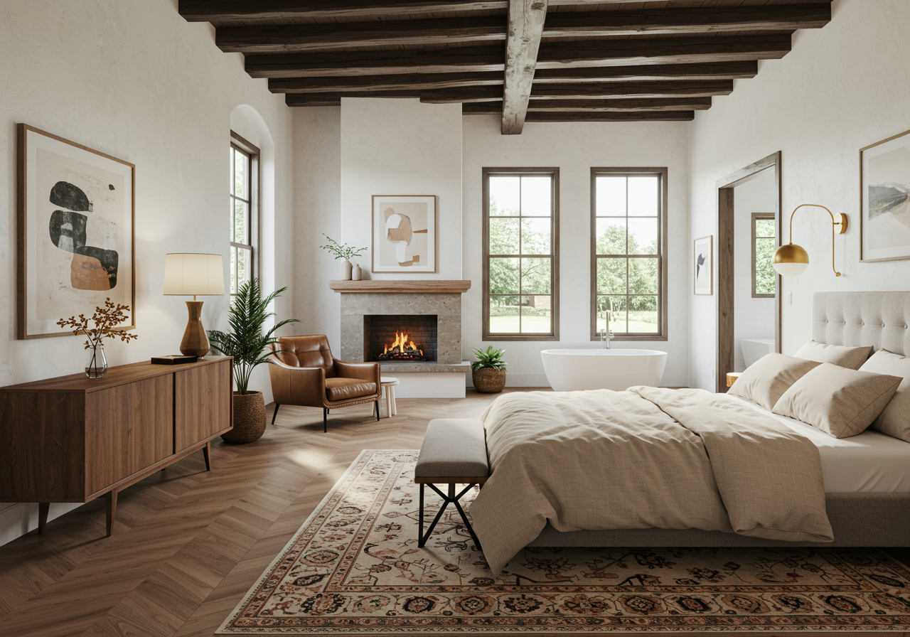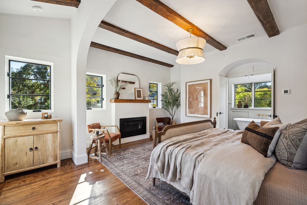 From the vintage oak floors to the beamed ceilings and curved archways, every element of this home reflects the timeless elegance of Mediterranean architecture, blended seamlessly with modern luxuries.