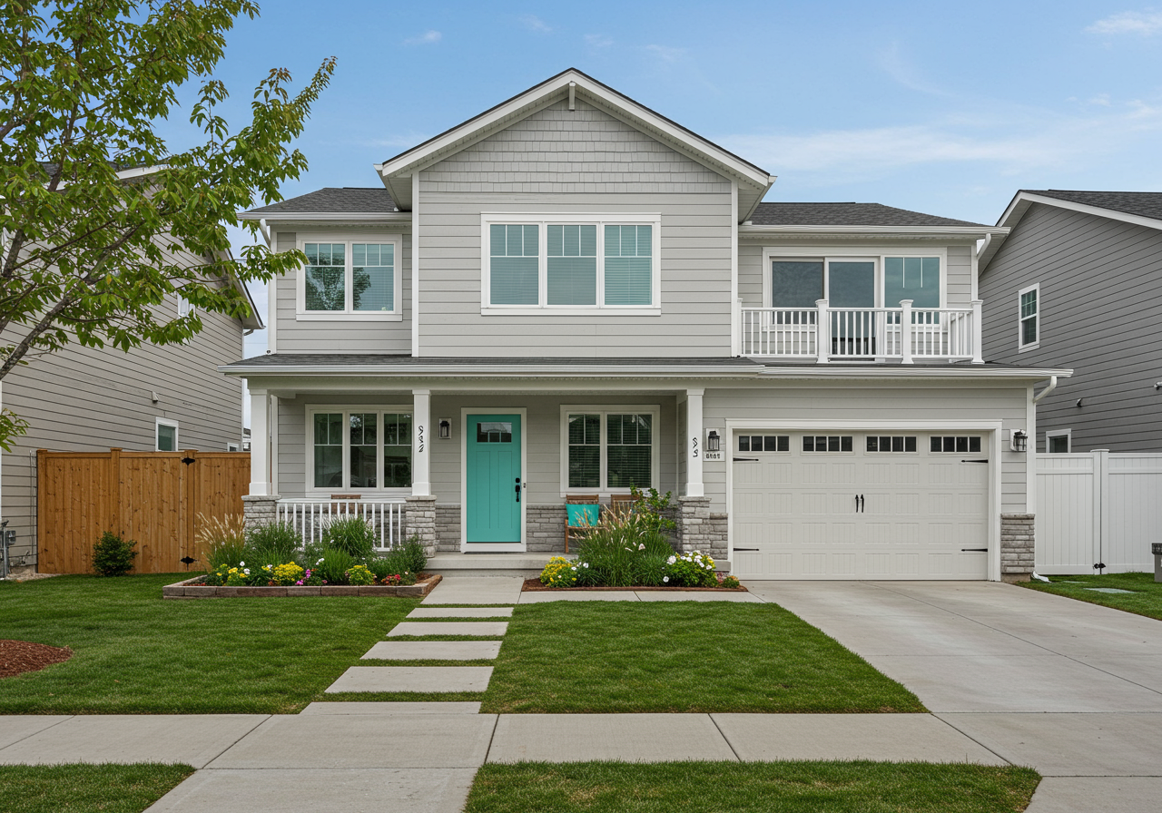 The fenced backyard is a private oasis, with decorative lighting and artificial grass, providing a picturesque space for outdoor activities. The front yard’s white picket fence adds a touch of classic charm to the property’s curb appeal.