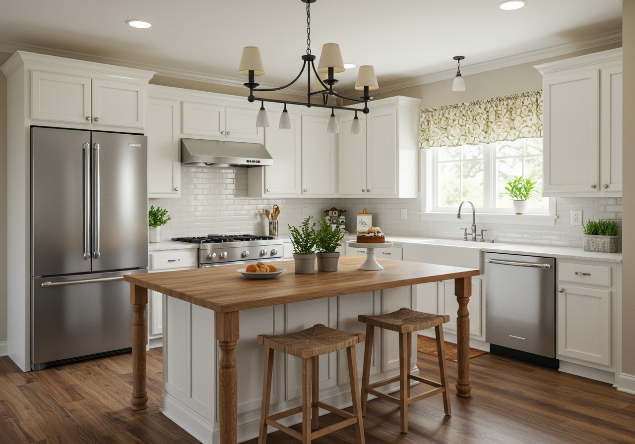 The heart of the home is the chef-style kitchen, a culinary dream with Cambria quartz counters, shaker-style cabinets, and a sleek subway tile backsplash. A butcher block island with bar seating becomes a social hub, while the gas oven range and ample counter space make cooking a delight. Adjacent to the kitchen is a cozy dining area, enhanced by French doors that open to the backyard, inviting natural light and fresh air into your daily life.