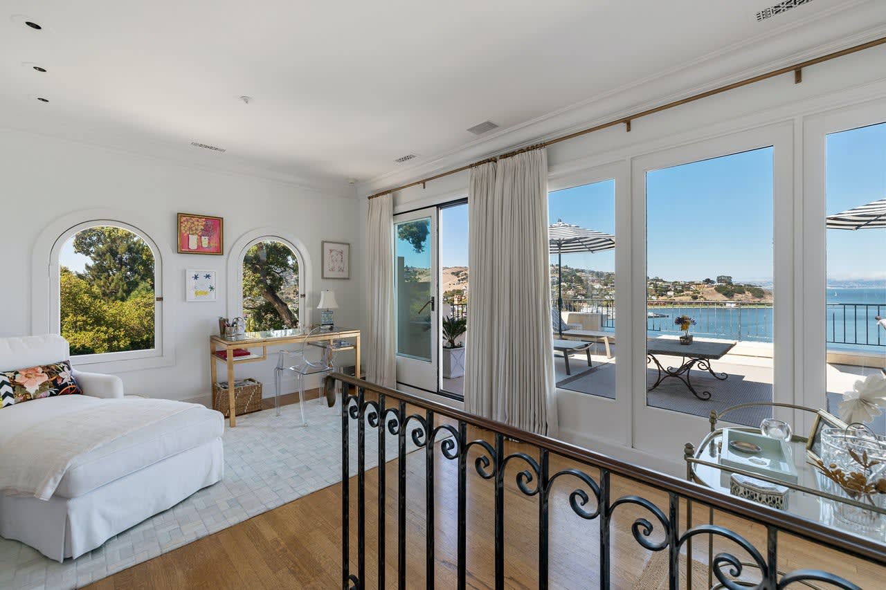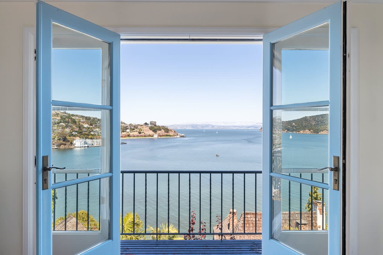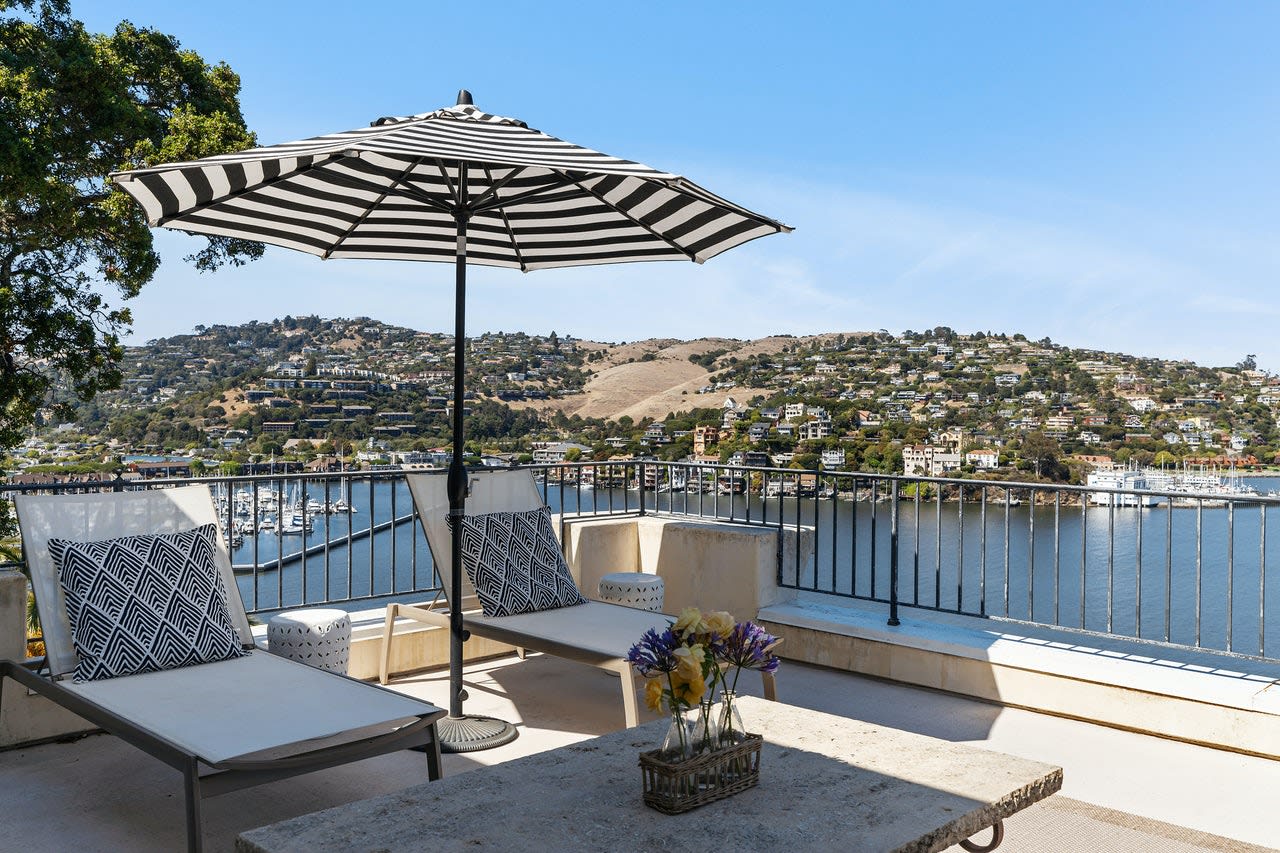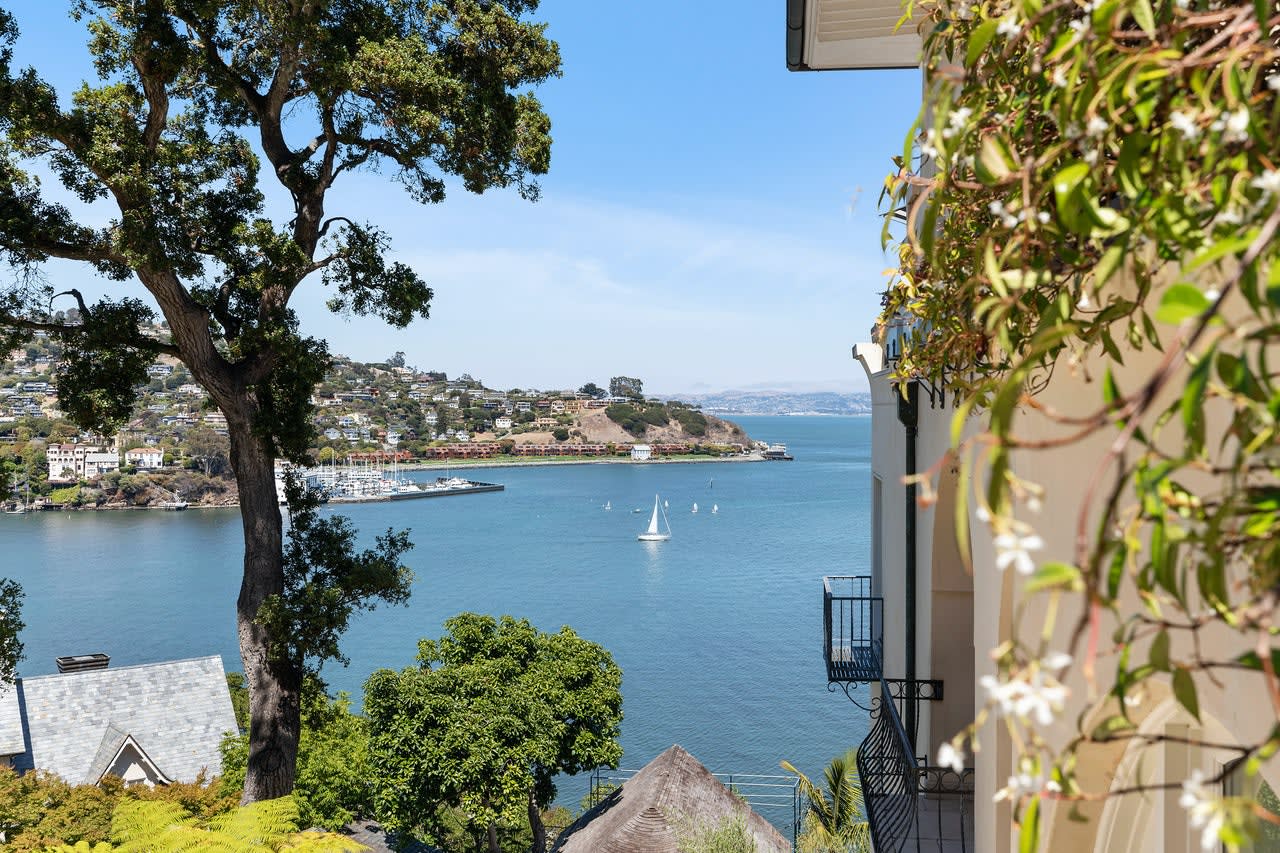 - Sweeping views of Belvedere Cove’s yacht harbor, the Tiburon hills, Corinthian Island, Angel Island, and the San Francisco Bay Bridge