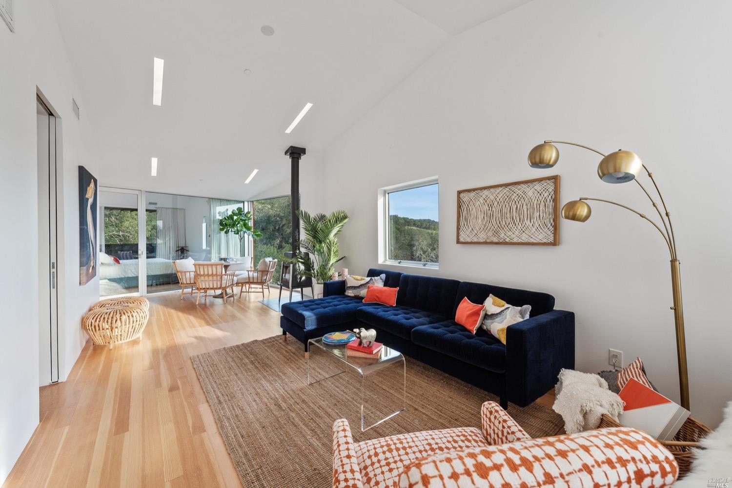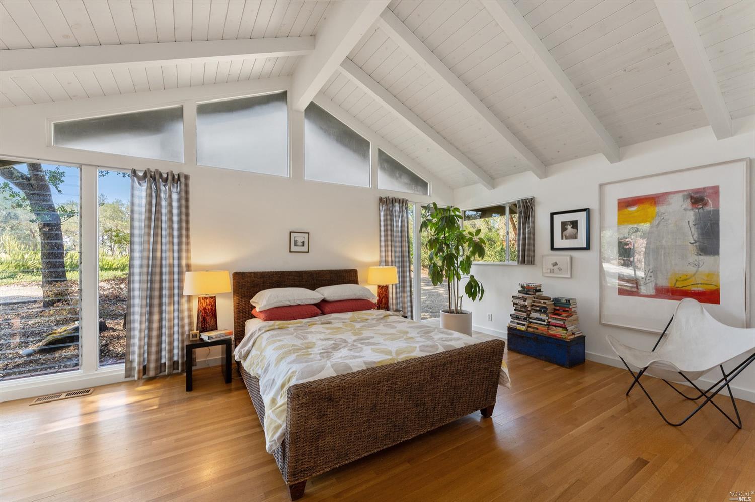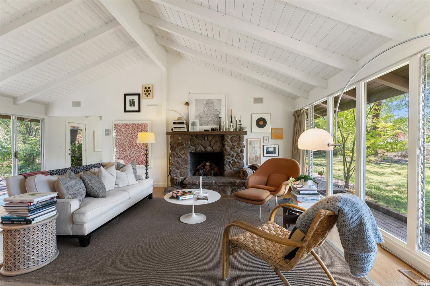 Stunning Mid-Century Modern in the heart of Wine Country. A well-known designer remodeled this home to perfection as his own residence. Single level 3 bedroom/2 bath with large bonus room plus detached studio. Oak studded parcel of over 1 acre with lush & mature landscaping, garden area, lawns, stone patios, potting shed, hot tub, and room for a pool. Interior features include hardwood floors, walls of glass, vaulted ceilings, and a fireplace. Dream kitchen with commercial-grade stainless steel appliances. The floor-to-ceiling windows and sliders make for a wonderful indoor/outdoor flow. Detached studio with a wall of glass looking out to nature. Centrally located in Wine Country with downtown Glen Ellen just down the road and a handful of wineries & dedicated open spaces nearby. Just an hour north of the Golden Gate but a world away.