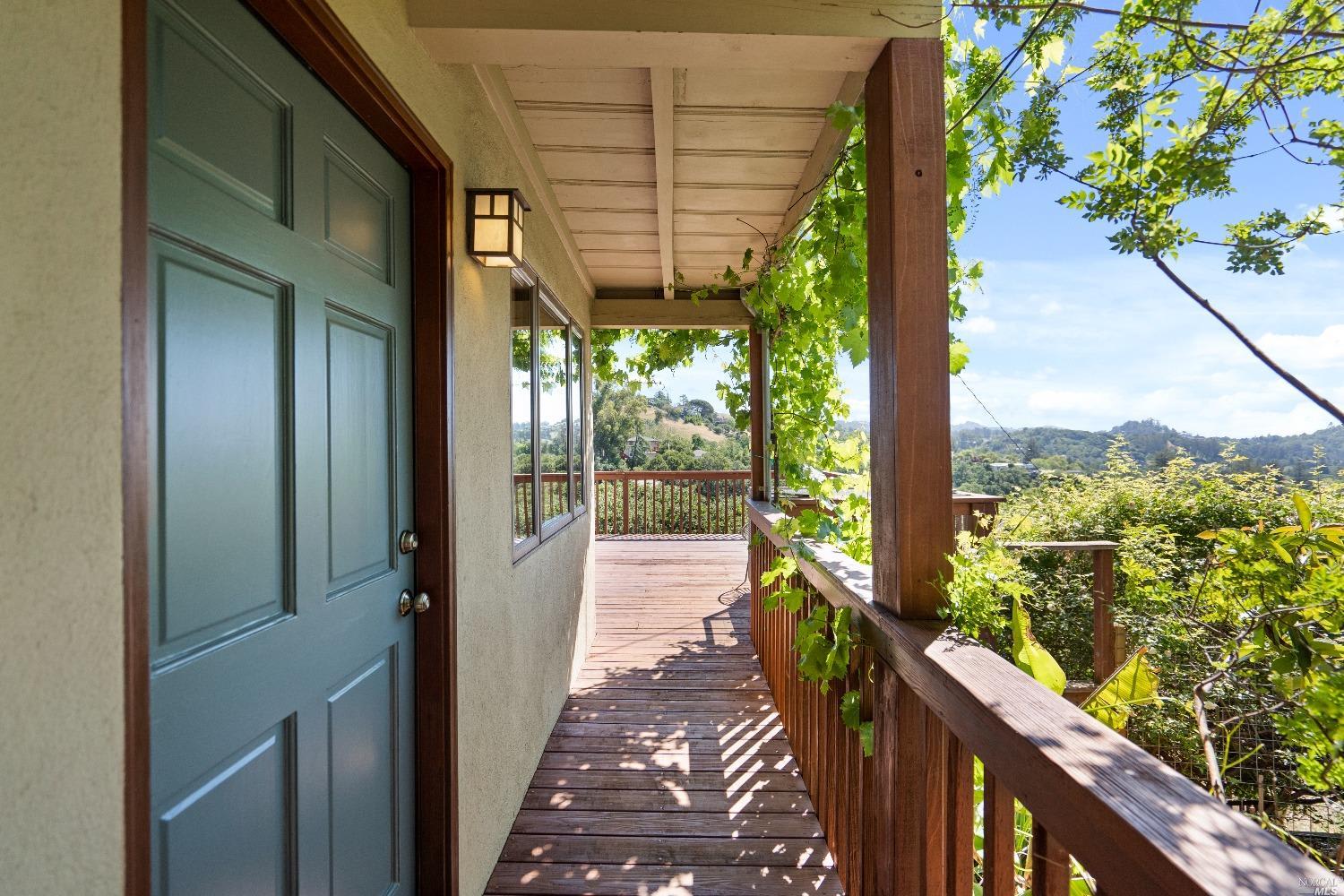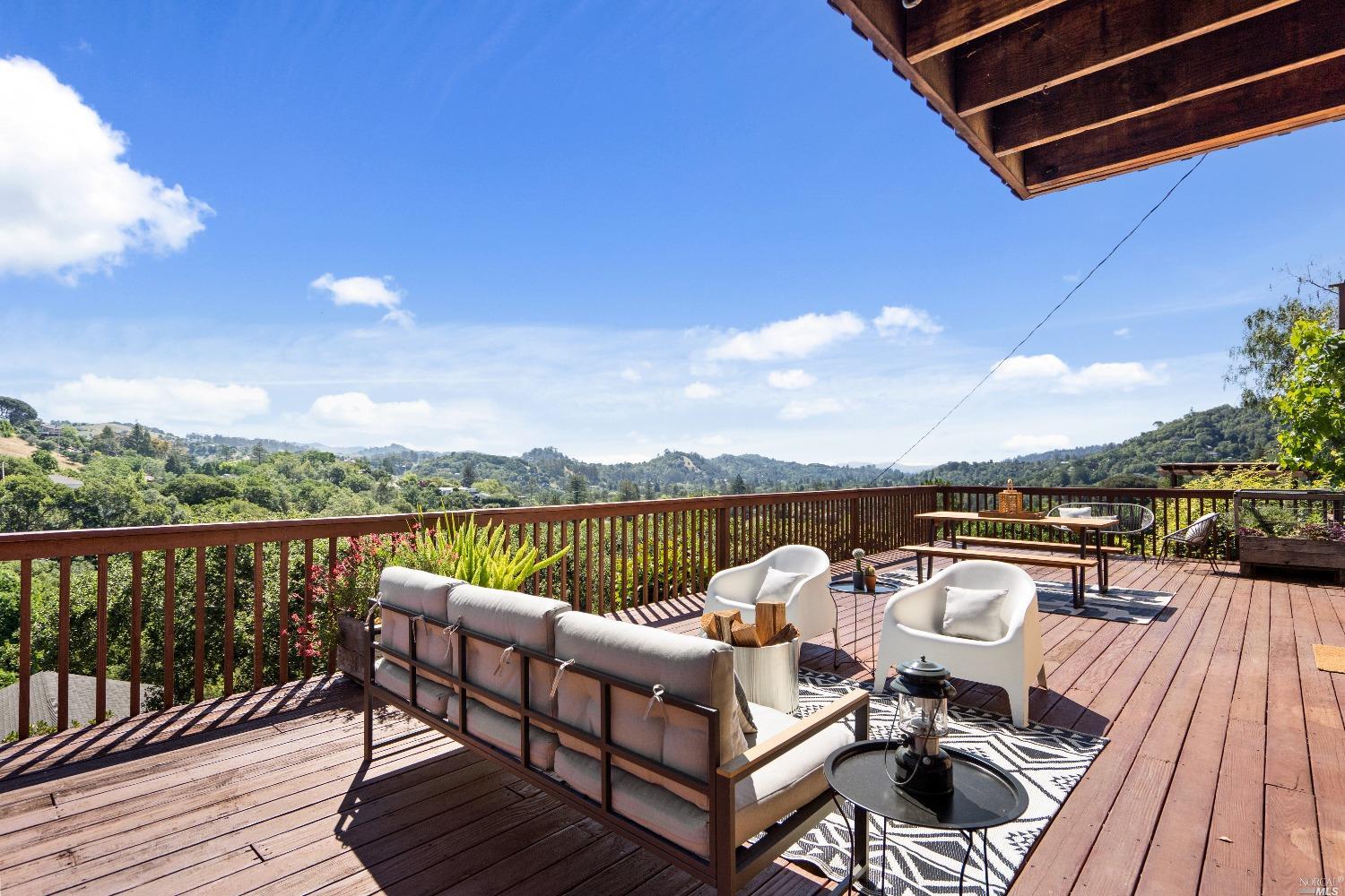 Located down a quiet lane is a nature lover's hideaway. Serene setting on a street-to-street lot with fabulous views and privacy. Terraced veggie gardens with all-day sun. The lower-level lawn area with fruit trees and a playhouse for kids, has access to Chester Ave. Large entertainment deck extending from the main living area for summer al fresco dinners with friends. Hardwood floors, a cozy wood-burning fireplace, fir doors and trim, add to the charm and warmth of this 3 bedroom, 2 bath home. The upstairs bedrooms all have vaulted ceilings and views to the East for the morning sunrise and moonrise. A two-car carport with storage, a greenhouse, and a tool shed. Newer roof on the main home with solar panels. Backs to open space and trails. Hot tub pad. Fully fenced. Hidden Valley Elementary School, (check w the district). Sewer compliant with RVSD. Walkable to Good Earth and downtown.