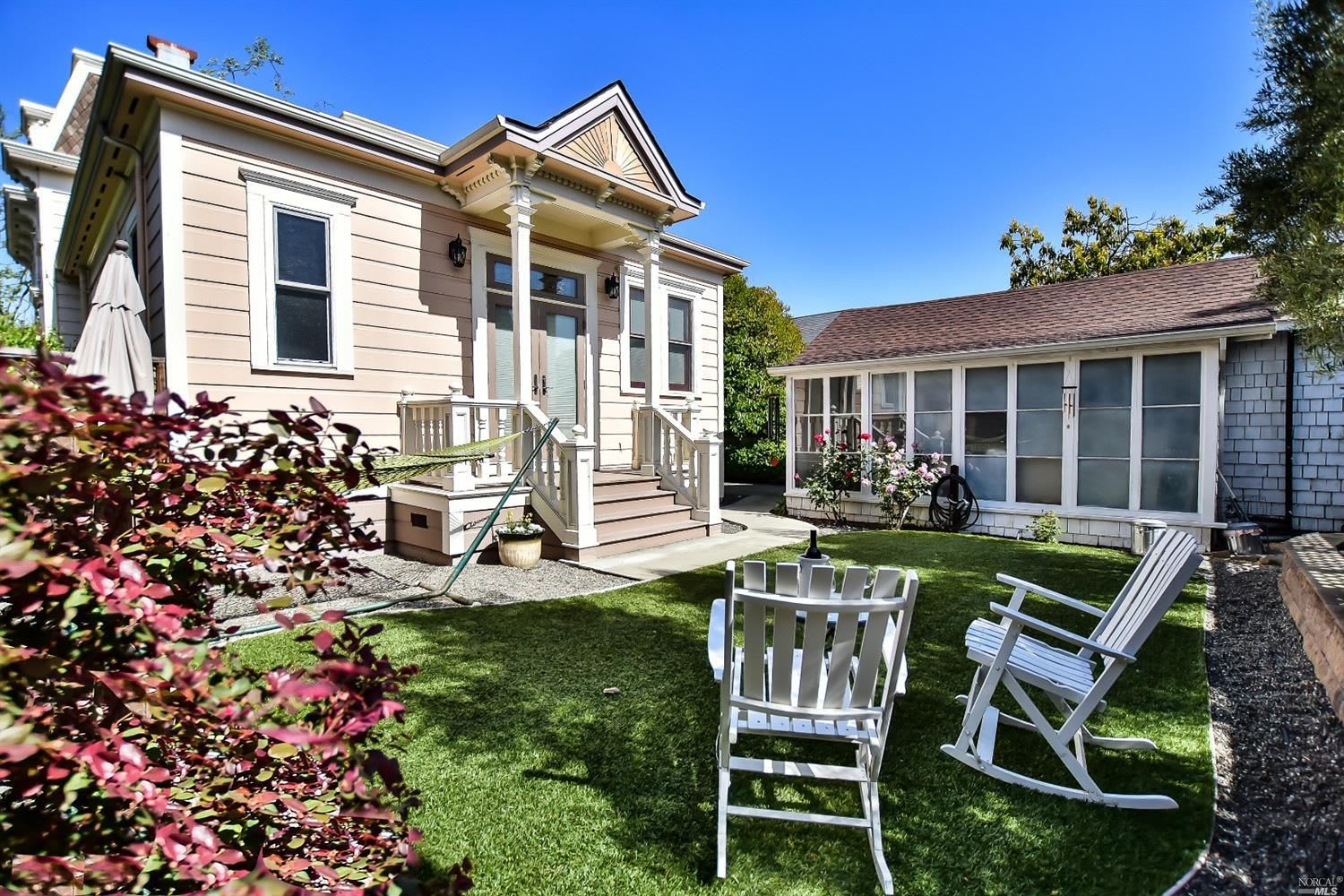 Own a beautiful Victorian home on D Street! This home is in the Second Empire style with a mansard roof. This is one of only two mansard roofs in Petaluma. Lovely verandah porch. Low maintenance landscaping. 1800sf, 3 bedrooms, 2 full baths. Cook's dream kitchen in architect designed rear addition (2006), wine fridge. 11 ft. ceilings, picture rails, Heritage Home in 2016. Maple and redwood flooring in the living room, red oak in upstairs bedrooms, Brazilian cherry in kitchen. Dressing room upstairs, crown molding, one bedroom/one bathroom downstairs, elegant curved staircase. The home has several gas light fixtures that have been converted to electric. Detached single car garage and sweet backyard. Tesla wall charger. Close to everything in downtown Petaluma.