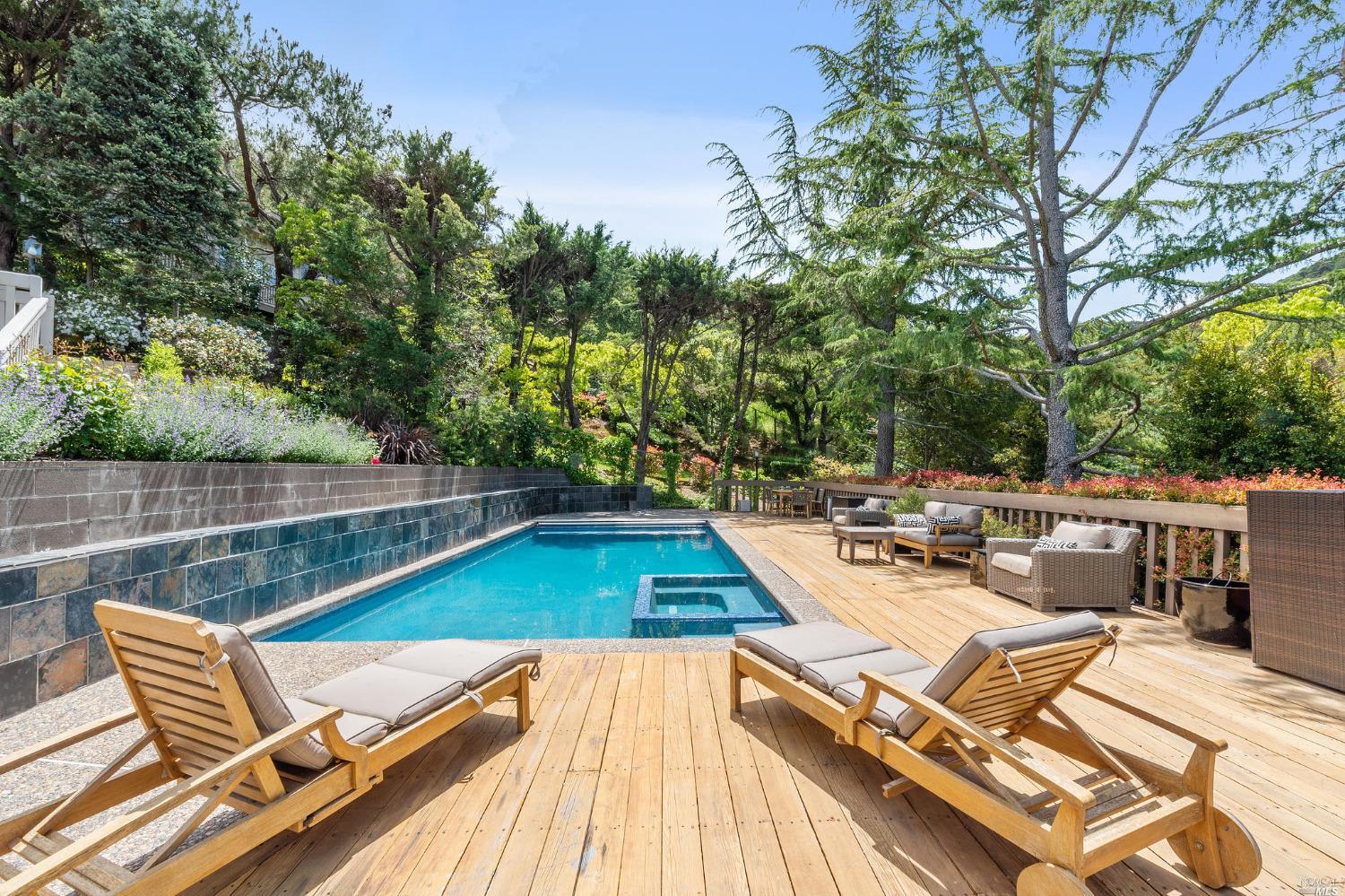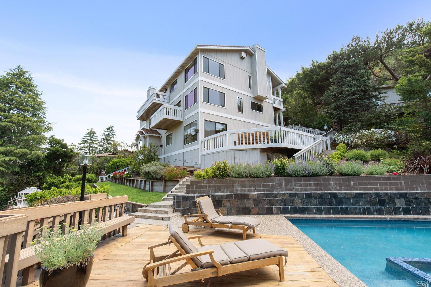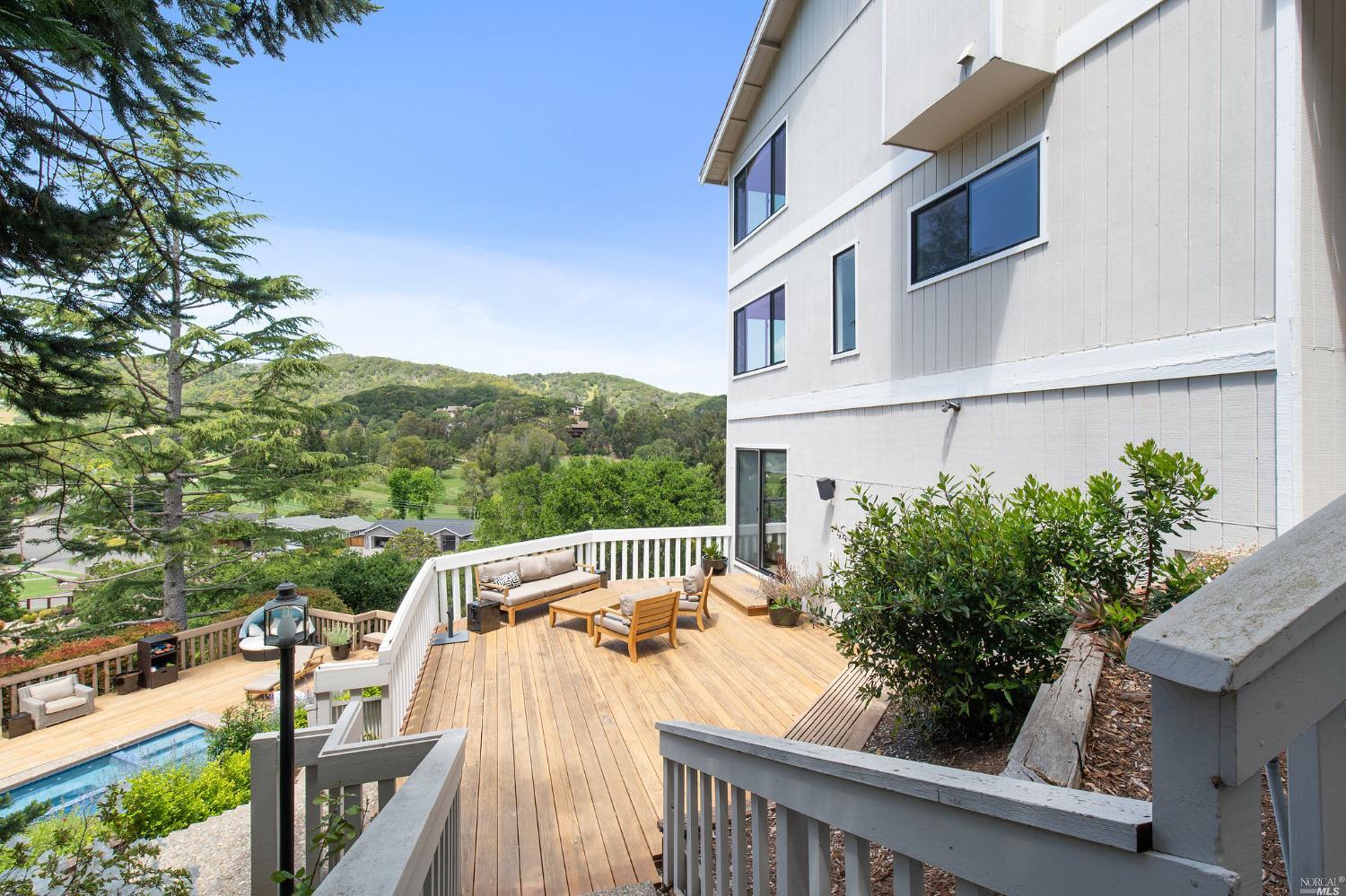 Expansive Marin Country Club Estates home situated on over 1/2 an acre at the end of a cul-de-sac. This stunningly updated property features a bright, open floor plan with Carrara marble kitchen and bathrooms, gourmet appliances, wide plank floors throughout, vaulted ceilings, pool/hot tub and breathtaking hillside and golf course views. A bedroom, full bath, office and main entrance can be found on the main level. 3 car garage. 6 bedroom, 5 baths, .58 acre. Resort life style with easy golf cart access at the 15th Fairway. Marin Country Club and hillside views. Pool/hot tub plus flat yard areas with play structure, zip line and garden. Vaulted ceilings, Wide plank flooring, Gourmet kitchen with Thermador appliances, huge island with seating, Carrara countertops, premium fixtures, walk in pantry. Main level bedroom, office, full bath and street entrance. Primary suite with retreat, large Carrara bath with deep soaking tub, luxurious walk-in closet. 2nd primary/ensuite guestroom with walk-in closet. 2 lower level family rooms, one with access to pool & spa. 3 car garage, cul-de-sac location. Located in South Novato with easy hwy 101 & 37 access, close to Pacheco Plaza (shopping, dining, Nugget Market) & College of Marin/IVC.