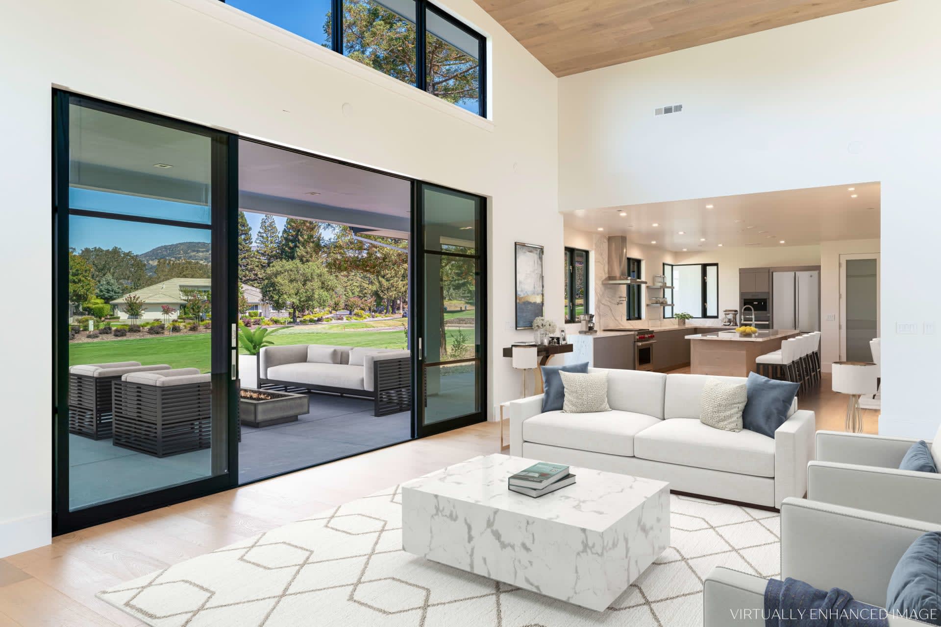 Outdoors, the property enjoys an expansive fairway terrace plumbed for a gas firepit, and offers space for a Bocce Ball court on the fringe of the fairway. Conveniently located, the home is a short drive from the Silverado Country Club, Spa, and Golf Courses, 20 minutes from the Napa Airport, and 1 hour from San Francisco. Make it your own by completing the remaining finishing touches.