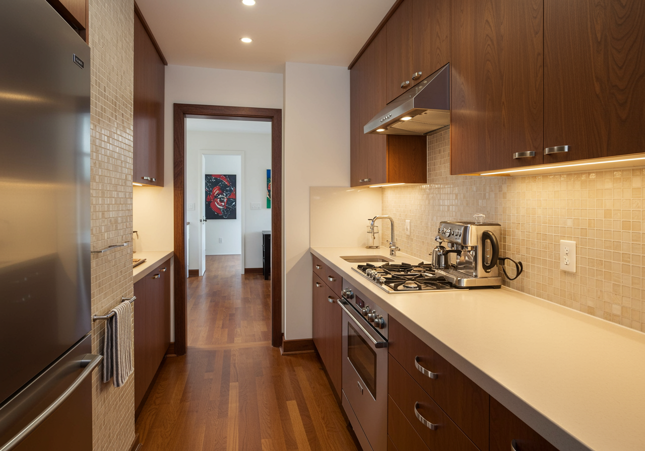 This beautifully appointed upper/corner unit boasts a spacious yet cozy layout and is extremely private & quiet. Offering two generous sized bedrooms with lovely Pacific Heights & city views, an open living/dining room perfect for entertaining, a fully equipped gas kitchen with stainless appliances, sparkling granite countertops, ample cabinetry & breakfast bar, one updated bathroom with shower over tub & glass enclosure, private south-facing patio off primary bedroom, in-unit laundry, 1-car independent parking, and private storage too! Add'l features: hardwood floors, double-paned windows, outfitted closets, custom paint & window coverings, and modern sconce & track lighting. Expansive common roof deck w/ GGB views! Ideal location - 97 WalkScore & steps to Chestnut/Union/Polk St. restaurant & shopping corridors, yet NOT in liquefaction zone!