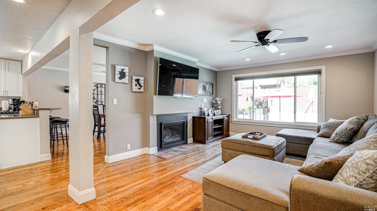 Welcome home! This meticulously maintained home features an open floor plan and two primary bedrooms, one on the main level. Upon entering, you will be impressed by the gleaming hardwood floors and the crown molding. The living room features an inviting gas fireplace insert and a huge window to enjoy the view of the sparkling pool. The open kitchen has abundant cabinets, Corian counters, and stainless appliances, and combines with the spacious dining room. There are three bedrooms on the main level. The second spacious primary bedroom is upstairs. It has a huge ensuite bathroom, plus an additional room (with skylights) currently used as a gym. It also has abundant closet/storage space. The peaceful backyard has a Pebbletec sparkling pool, which was recently resurfaced. The pool equipment was also recently replaced. The siding was recently replaced, and central air was installed in June 2022. The electrical panel was also installed a few years ago. The refinished garage creates a useful space and has storage galore. This San Marin beauty is located near award-winning San Ramon Elementary, Sinaloa Middle School, and San Marin High School. Dog Bone Meadow dog park, Indian Valley Golf Course, Rolling Hills Tennis Club, Kaiser Medical, Harvest Market, restaurants, and miles of trails are minutes away.