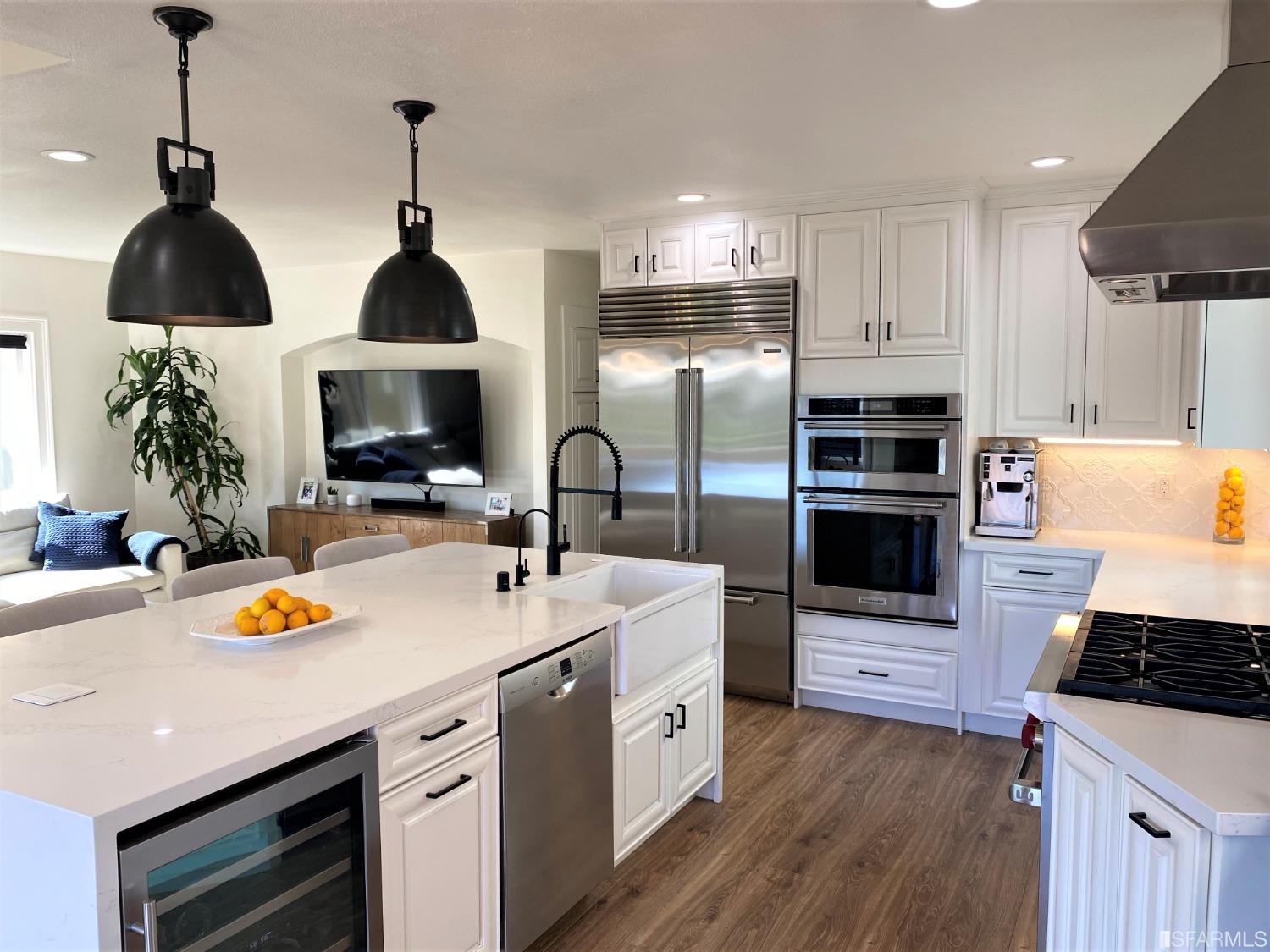 Start 2023 in this fully detached, extensively renovated home in St. Mary's Park. The owners have thoughtfully turned it into an entertainer's dream! The main level offers a perfect layout with an open-plan kitchen & living area in the front, & 3 generous bedrooms in the rear. The social space includes a spectacular kitchen w/ SubZero fridge, Wolf range, Zephyr wine fridge, RH lighting, a large island w/ bar seating & thoughtful storage throughout. Turn on the gas fireplace & invite your friends over for a cozy winter dinner party. A stunning 4 piece bath w/a deep soaking tub & glass shower completes this level. On the lower level is a large family room, a second renovated bath & a brand-new laundry room. The garage fits one car & offers additional space for storage or a workshop. Take the party outside & host your friends in the newly landscaped, sun-filled garden. Your barbeque game will be elevated w/ this custom setup that includes a Blaze gas grill & XL Big Green Egg smoker. The mature lemon & apple trees together will bear fresh fruit all year long. Other upgrades: new flooring, light fixtures, motorized shades, plumbing, electrical, roof, exterior stucco/paint & seismic! A+ location near Cortland & Mission St shopping & dining, St. Mary's Rec Center, FWYs & MUNI!