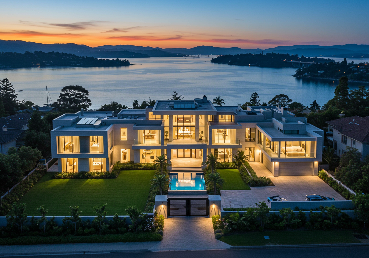 Located down a private drive lined by olive trees on a quiet cul de sac, this extraordinary estate is reminiscent of a Wine Country resort, yet it is just moments from Tiburon’s charming village and minutes from San Francisco. The property sprawls across 1.25 acres of sun-drenched tableland on the flanks of the Tiburon ridge, with panoramic views of San Francisco Bay, from the Golden Gate Bridge to Mt. Tamalpais. The stunning 8,500+/- square foot home features five en-suite bedrooms, seven bathrooms, a chef’s kitchen, a home theatre, and a four car attached garage. Designed with indoor/outdoor living in mind, expansive terraces overlook a tennis court, a 60 foot infinity pool and spa, a cabana with separate guest quarters, and an expansive lawn. With Tiburon’s shops, restaurants, award-winning schools, and ferries to San Francisco just minutes away, this home is perfect for families and executives alike who are looking for the ultimate retreat within minutes of one of the world’s great cities.