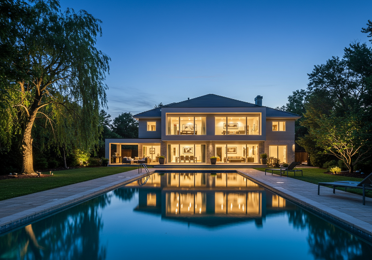 A resort at home is the feeling that 1124 Butterfield provides. The outside with the generous pool and separate spa entice you to the outside which also has a lawn and is surrounded by trees. A sweeping willow is present and just aids in the feeling of relaxation the property provides. Kitchen / Family room has fireplace and great eat in area looking out to the pool Lawn area. Great room to watch the game and the Bose surround system is being left for the new owner. Primary bedroom feels like a suite at a 5 star resort. Luxury abounds in the design of the Bath area and the movie star like closet. In addition there is a room just off the primary that would serve as a perfect nursery ,office or workout room. The balcony just off the bedroom provides one with a great viewing of the pool area and allows one to enjoy the lush landscaping as well. The exterior lighting provides a dramatic effect to the whole scene. Fruit trees and organic raised beds.