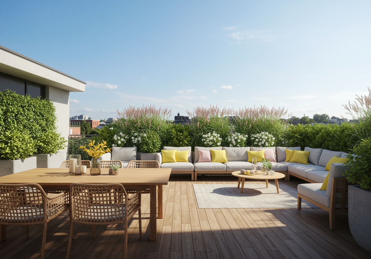 High-end finishes are evident throughout this stunning home, particularly in the primary bath, which features a custom vanity and a sophisticated shower design. Residents of 400 Grove St #504 also enjoy top-notch amenities, including a rooftop deck with a BBQ grill, a serene bamboo courtyard, and the convenience of a virtual doorman.