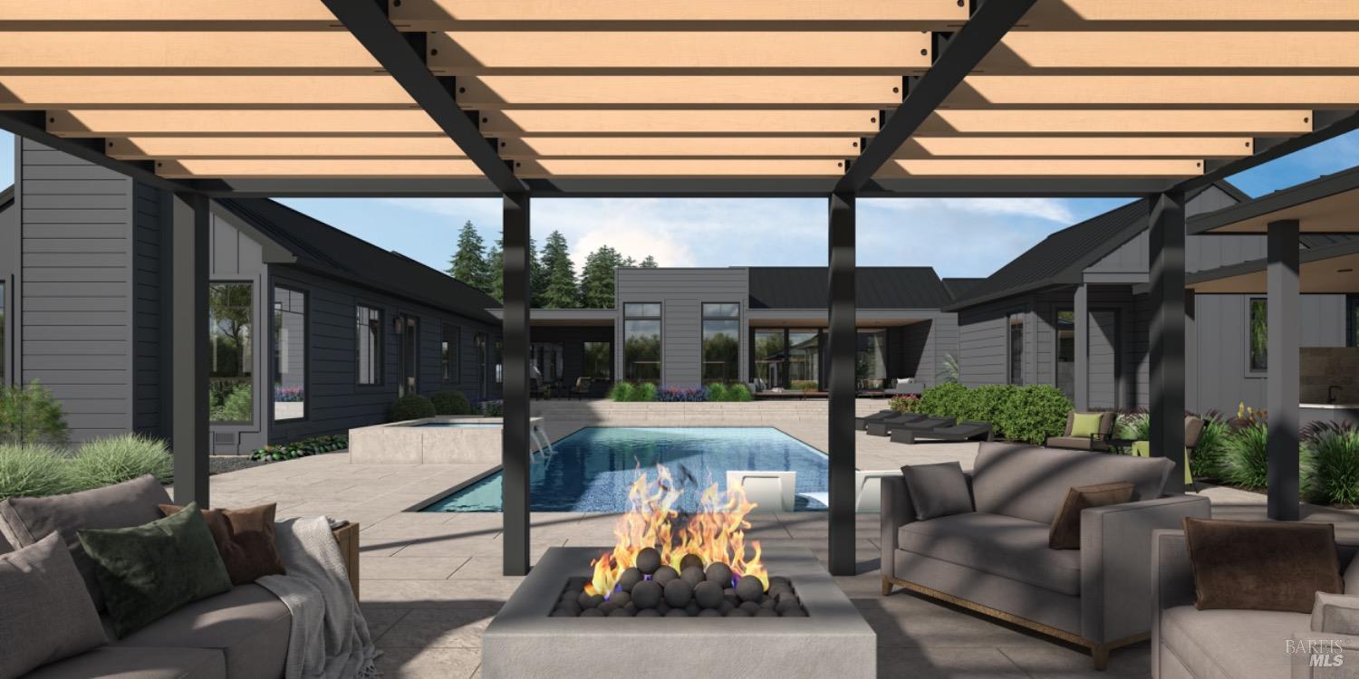 Designed with California’s indoor-outdoor lifestyle in mind, this estate provides seamless transitions to outdoor entertaining spaces. A private patio off the primary bedroom offers a serene vineyard view, perfect for morning coffee or sunset relaxation. The grounds feature a refreshing pool and spa, a pool house, an alfresco kitchen outfitted with Hestan appliances, and a pergola with a terrace and fire pit. Each outdoor area invites relaxation and provides stunning views, ensuring every gathering is memorable.