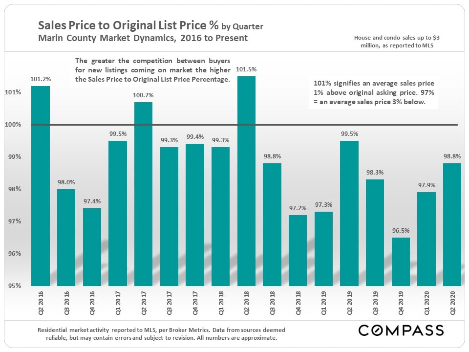 Sales Price to Original List Price % by Quarter - Marin County Market Dynamics, 2016 to Present