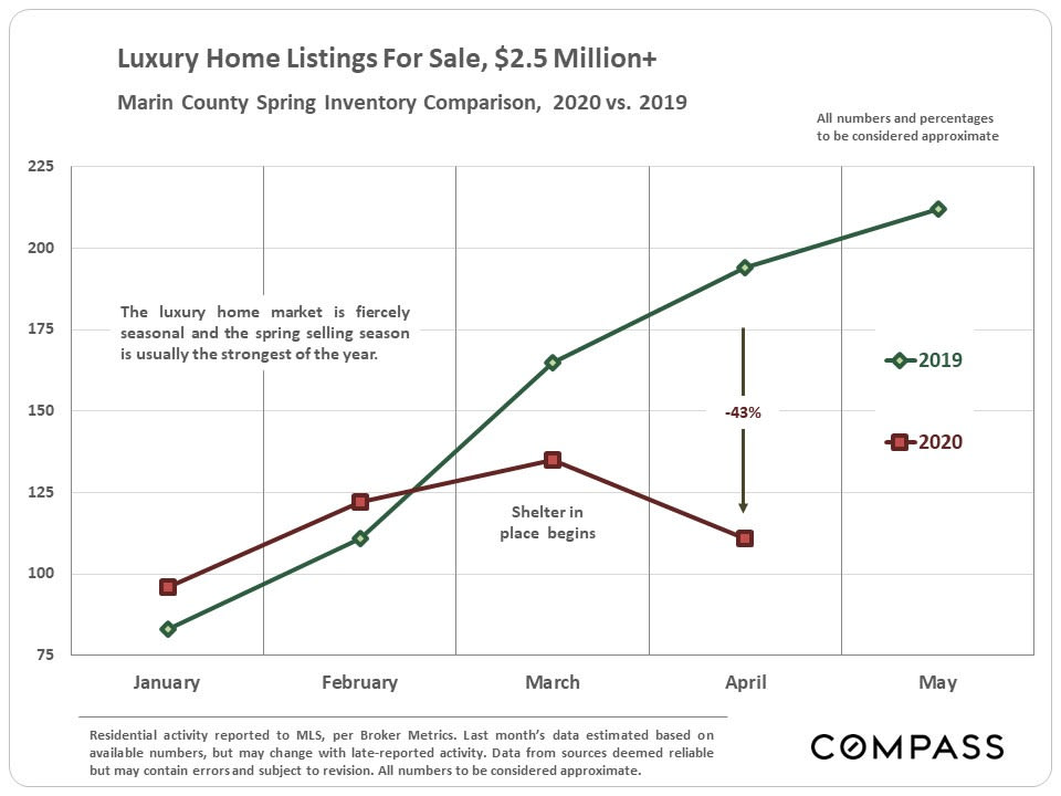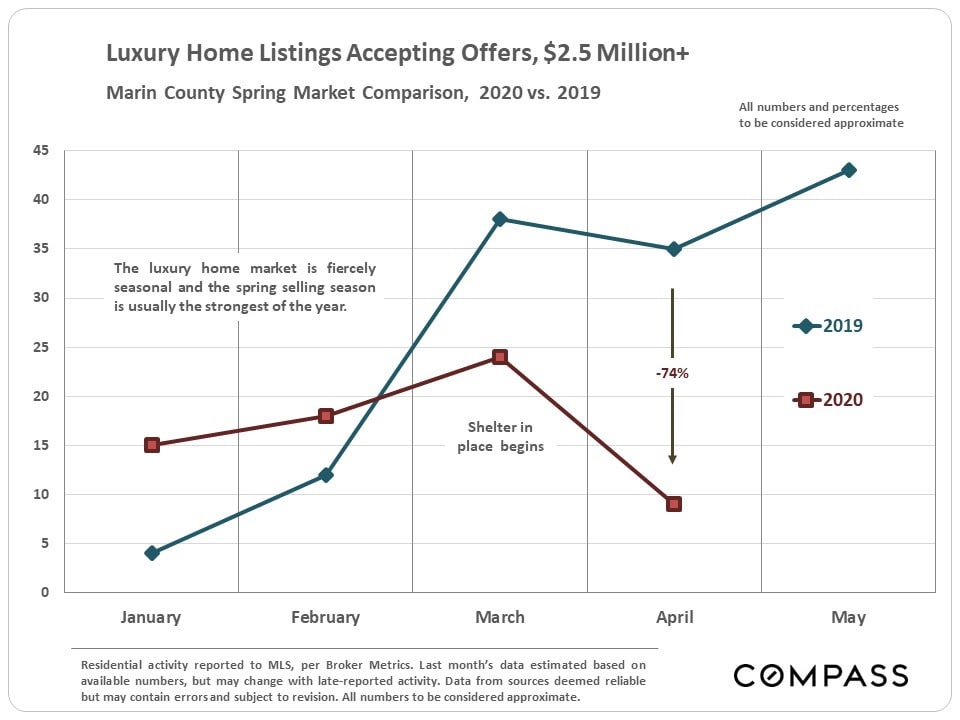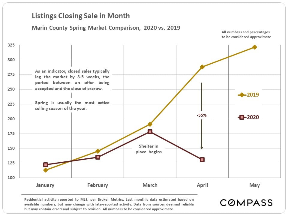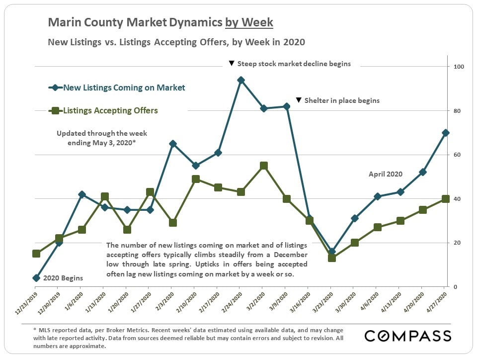 Since mid-March, shelter-in-place caused steep drops in activity across the board in what is typically the busiest selling season of the year. However, activity has been picking up since bottoming out in late March/early April, and will presumably continue to increase with the easing of both shelter-in-place and property-showing rules.