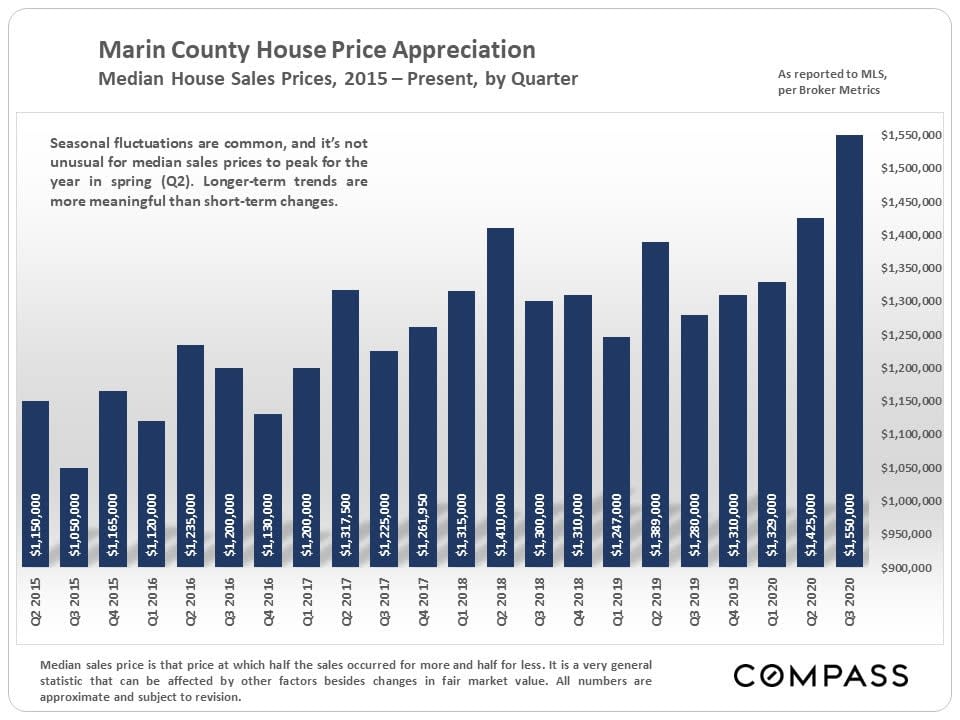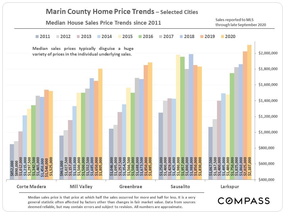 Median sales prices can rise because of increases in fair market value – i.e. buyers are paying more money for the same home (supply and demand) – and/or because buyers are purchasing larger, more expensive houses, often in more expensive communities. Both dynamics are currently at play, but it is certain that affluent and very affluent buyers have made up a dramatically increasing percentage of the demand in Marin and Bay Area markets.