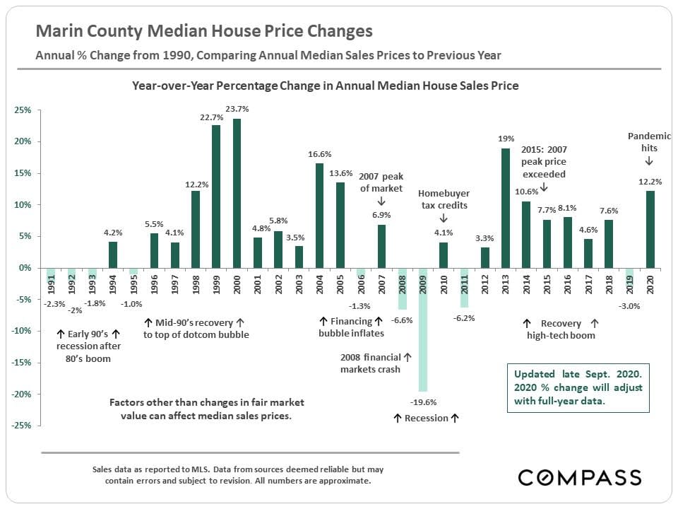 Annual percentage changes in median house sales price: The 2020 YTD percentage will almost certainly change, one way or another, by the time full-year sales data is in.