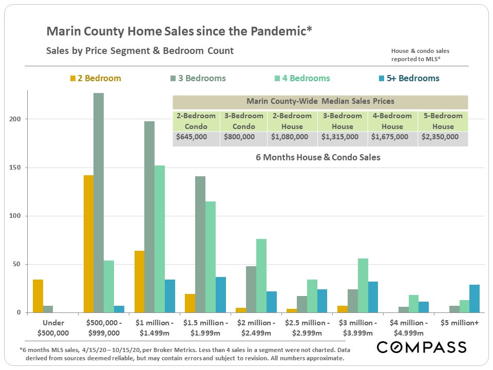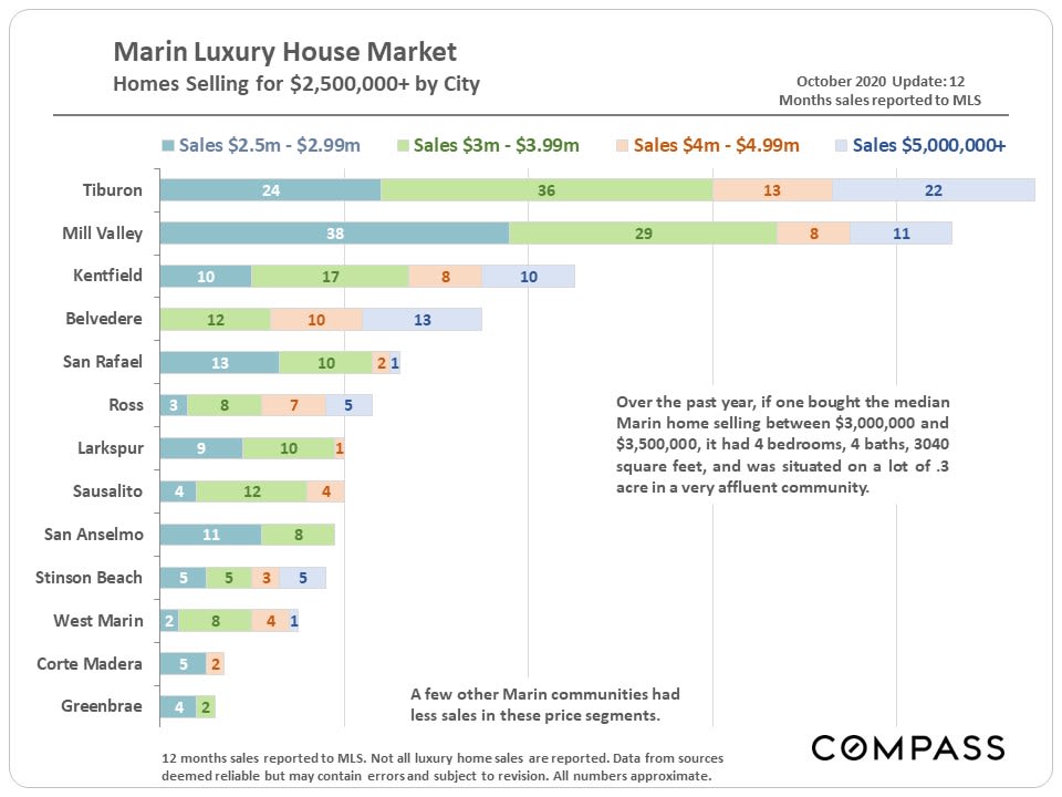 As mentioned before, recent jumps in median house prices have been driven not only by appreciation in fair market values, but by large increases in expensive home sales. Affluent buyers have made up a significantly larger percentage of Marin and Bay Area home purchases since the pandemic hit.