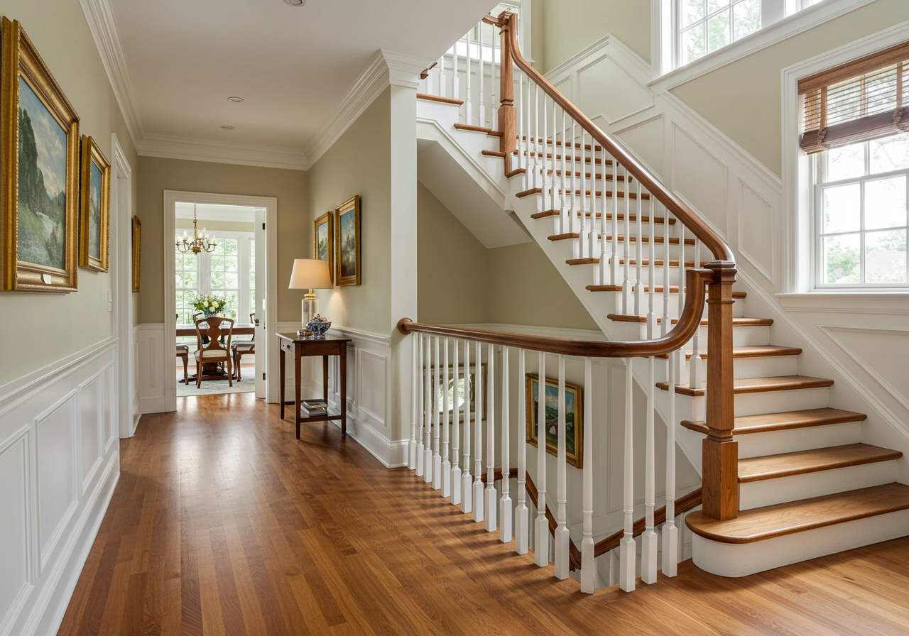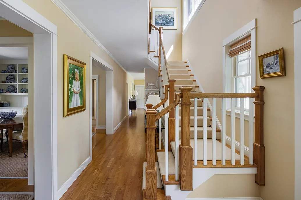 - The lower level features hardwood floors, while the upstairs offers plush New Zealand wool carpeting.
