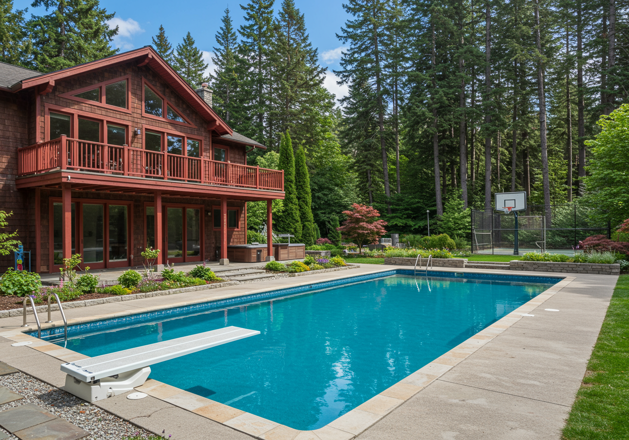 This expansive, 4 bedroom, 3 bath, 3617 sq. ft. estate home, with detached office/pool house, offers scenic views and loads of privacy. Situated along a gated drive on over 1.15 acre, this custom 1980 home has been well loved and is ready for you to add your own new finishes. The open floor plan is ideal for entertaining, large families or working from home. This home features large formal living and dining room with soaring ceilings, eat-in kitchen with butcher block island and breakfast bar, and family room with sliding door to the lovely outdoor space. Also on the main level is the guest bedroom, full bath, laundry room with sink and separate pool house/office with half bath. The spacious main suite with scenic views and private balcony, ensuite bath with dual vanity and soaking tub, two guest bedrooms and full bath are all located on the second level. Vacation at home in the amazing backyard complete with sparkling pool, spa, sport court and mature trees.