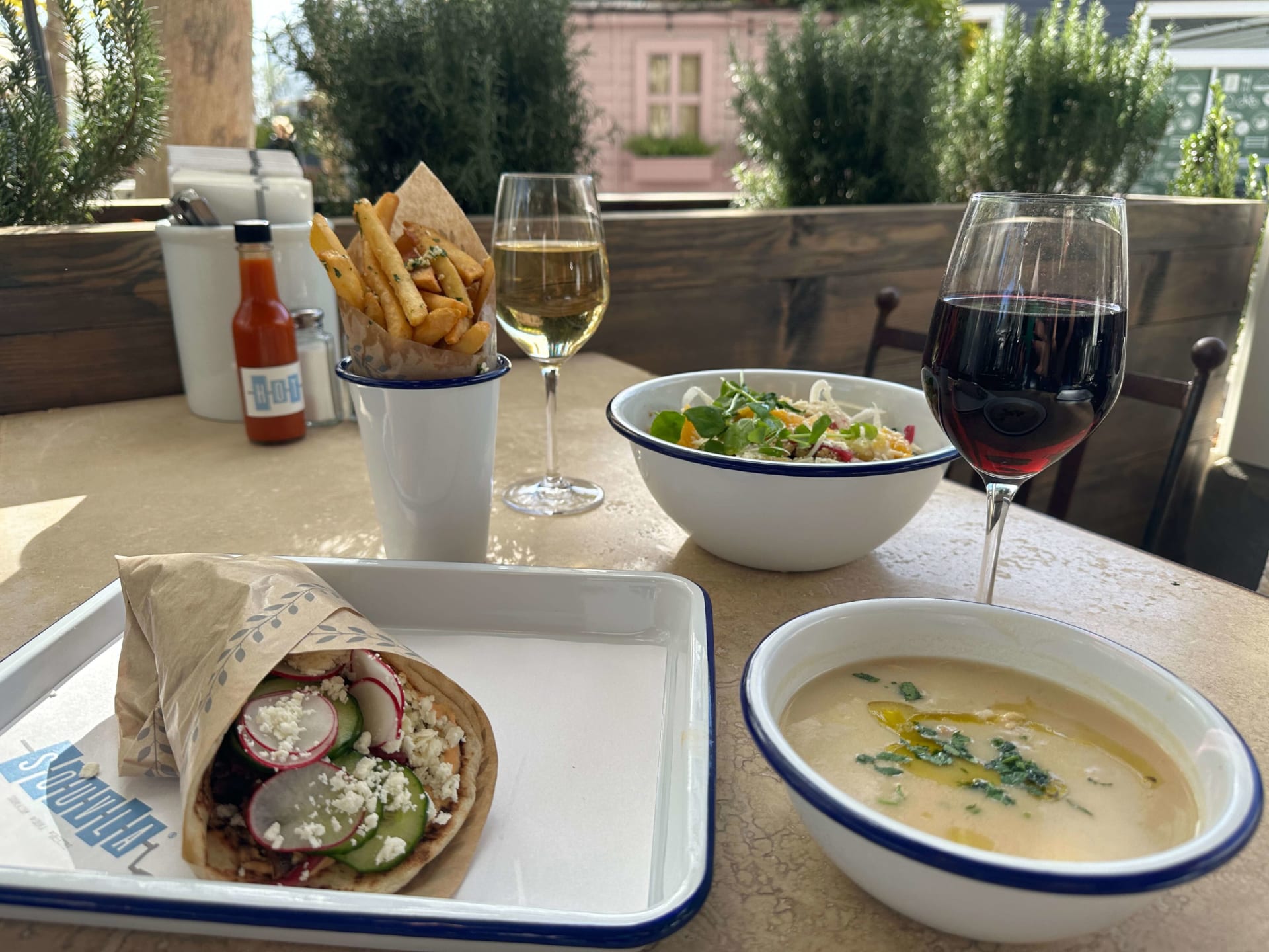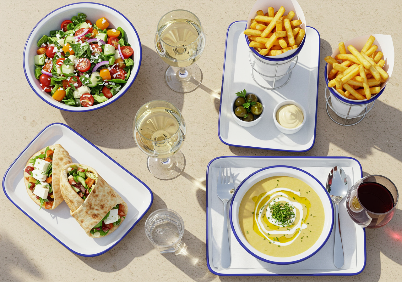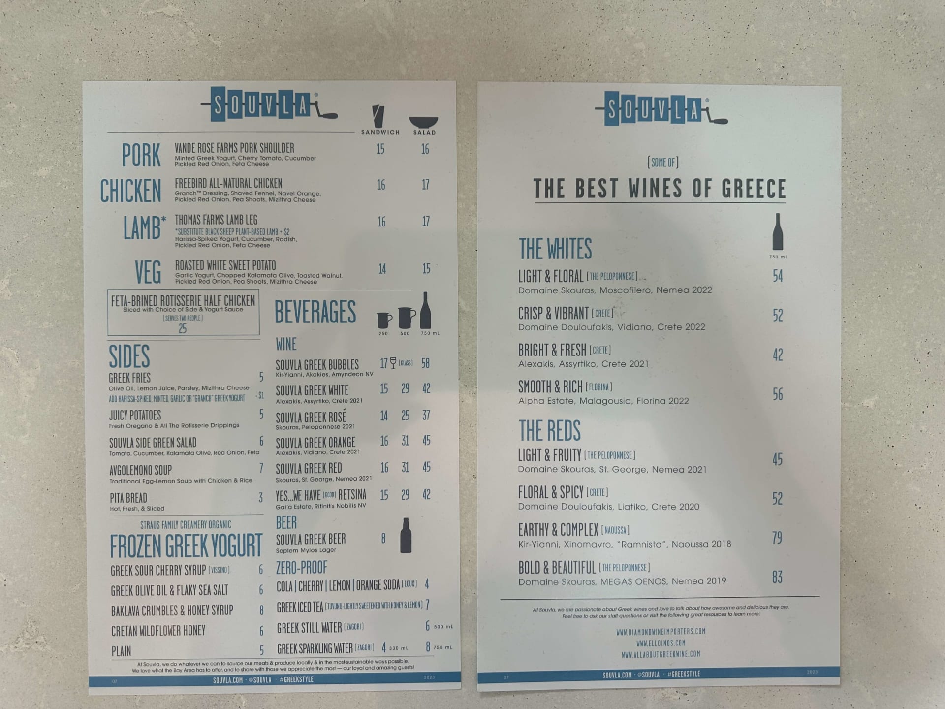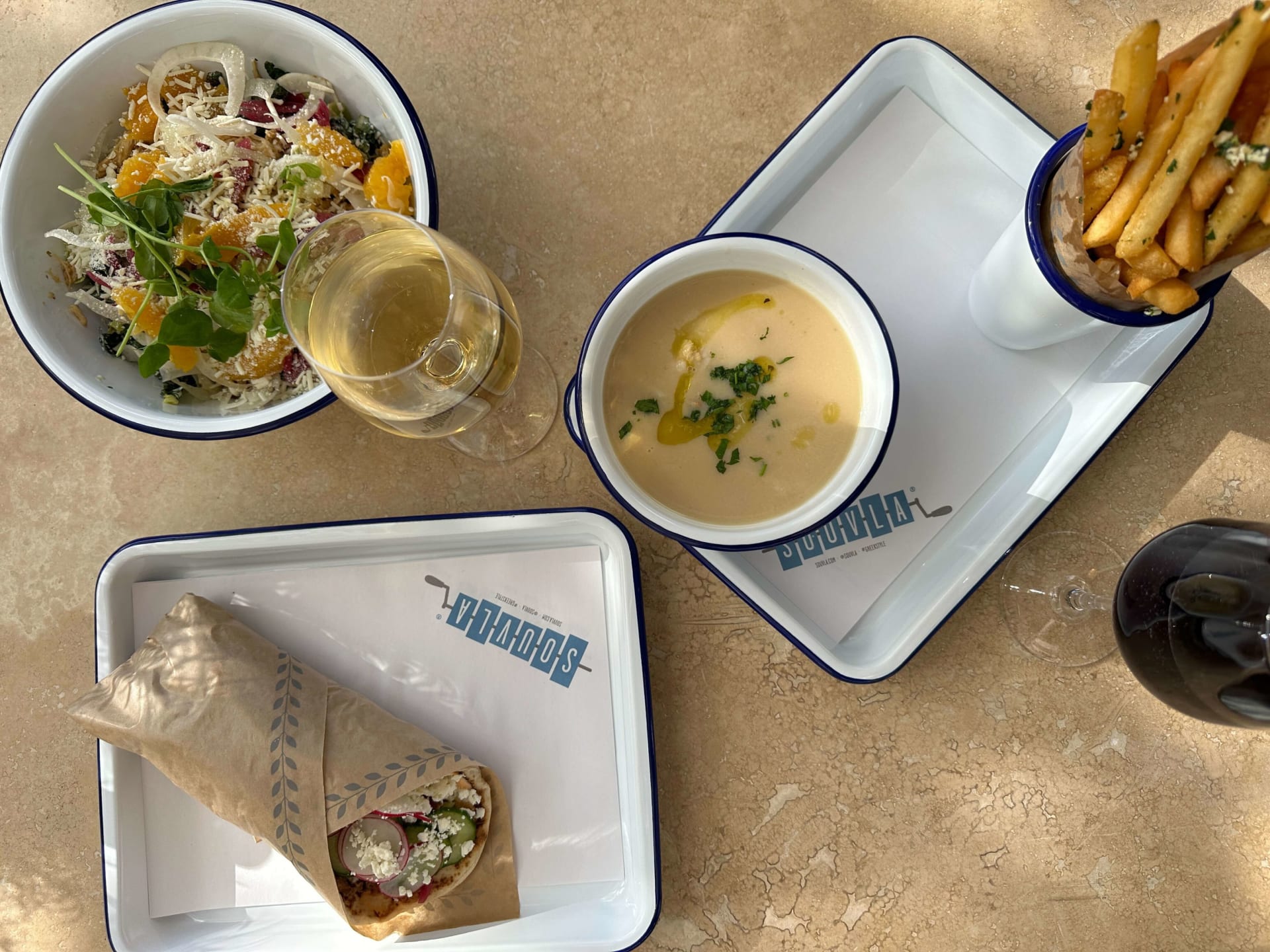 At Souvla, it’s about the harmony of simple yet robust flavors. Their acclaimed menu stars a range of mouthwatering options like the much-loved chicken salad, perfectly complemented by a crisp Greek white wine, and the savory lamb sandwich that pairs so naturally with a bold Greek red. Their sides are no less noteworthy, with options like the famous Greek fries drizzled in olive oil and lemon juice, or the juicy rotisserie-dripping potatoes that promise to be a treat in themselves.