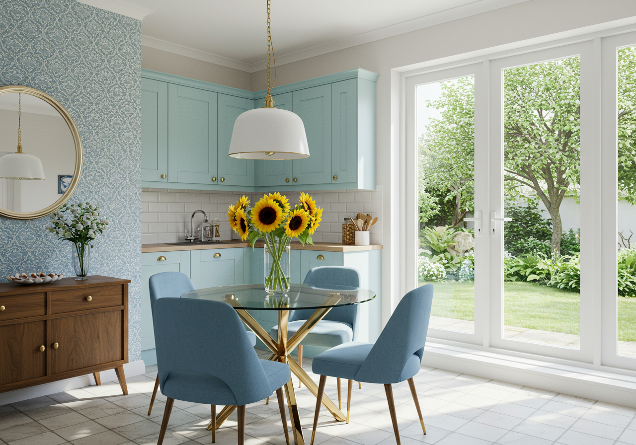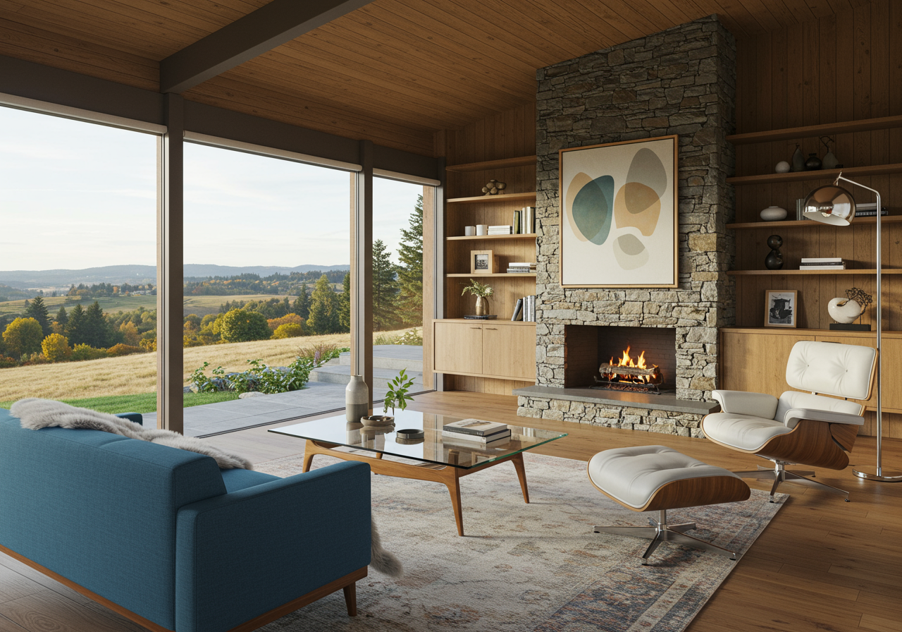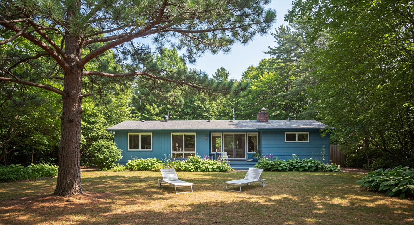 This single-level rancher boasts three bedrooms and two bathrooms, radiating a comfortable country charm that's been freshly revitalized. The heart of the home is the recently modernized eat-in kitchen, where quartz countertops, a new Forno pro-style stainless steel range, GE appliances, and updated fixtures blend seamlessly to create a culinary haven. Adjoining the kitchen is the formal dining room, leading to a spacious living room adorned with redwood-paneled walls and a captivating mid-century brick wood-burning fireplace.